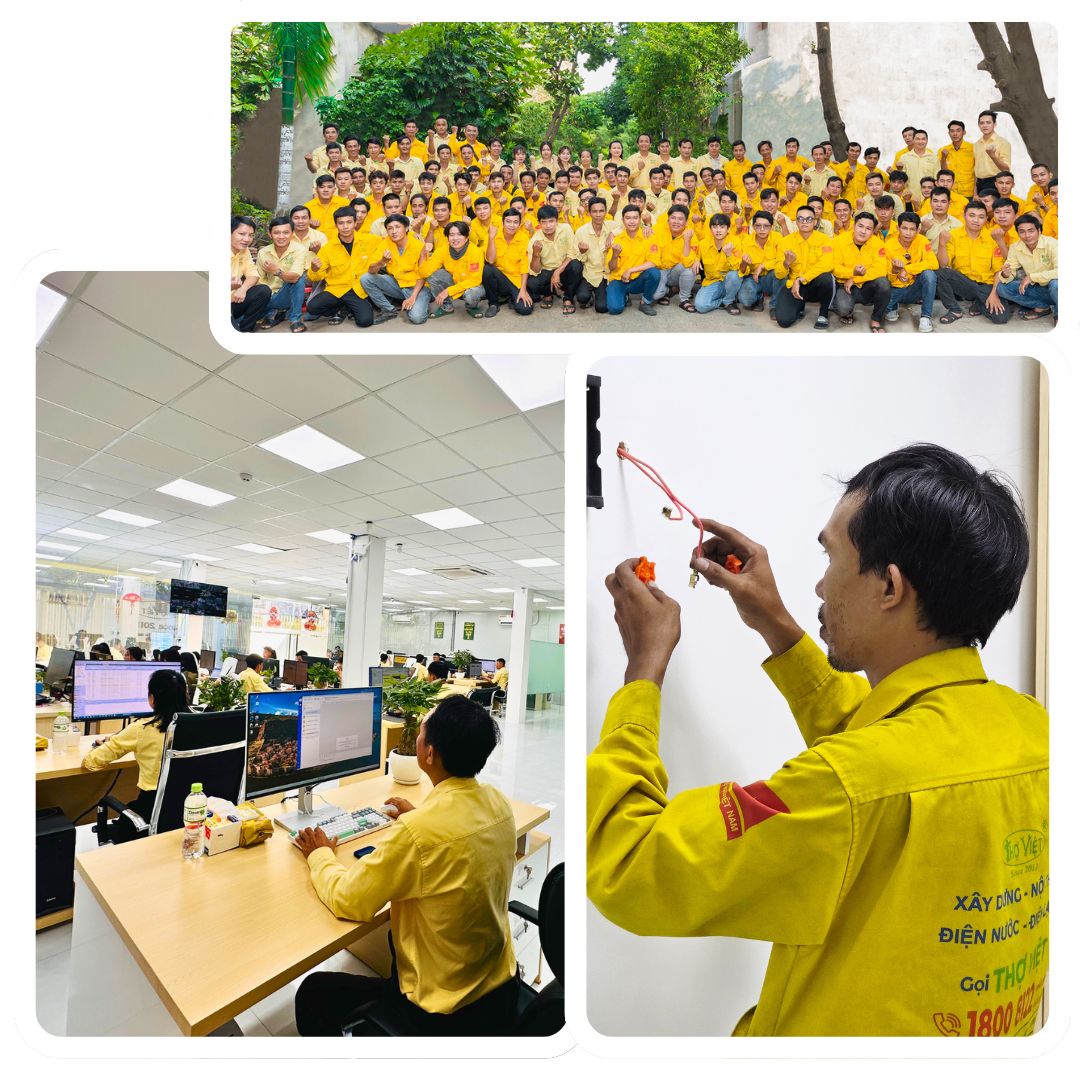 Thợ Việt là đơn vị dịch vụ kỹ thuật Thi Công – Lắp Đặt – Bảo Trì – Sửa Chữa – Vệ sinh với hàng trăm dịch vụ: Xây Dựng – Sửa nhà, Cơ Khí – Sắt Inox Nhôm Kính, Điện Nước, Điện Lạnh, Đồ Gỗ, Vệ Sinh Công Nghiệp, Chuyển Nhà, Thông Cống, Hút bể phốt,… dành cho hộ gia đình (Dân Dụng) và nhà máy/xí nghiệp (Công Nghiệp).