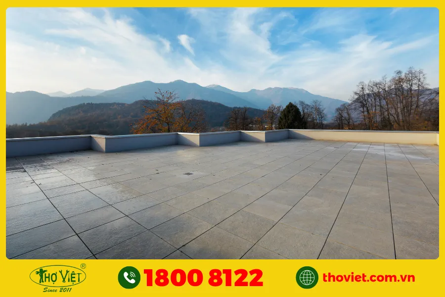 Gạch sân thượng nên có độ hút nước thấp để hạn chế ẩm mốc và giảm nguy cơ thấm dột xuống lớp nền. Nếu dùng gạch hút nước cao, lớp vữa bên dưới dễ bị phồng rộp, làm mất kết dính và giảm độ bền mặt sàn.