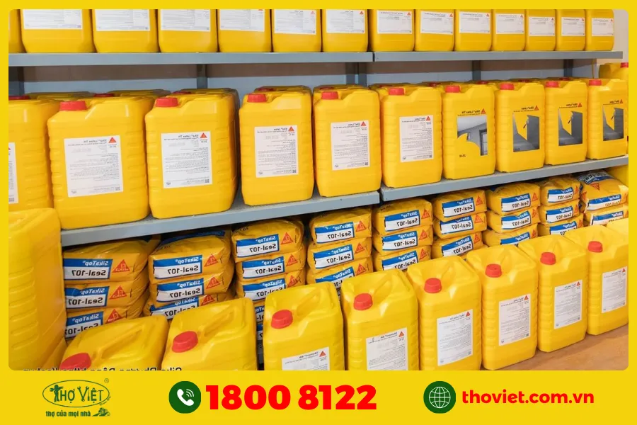 Trộn Sika với xi măng và nước đúng tỷ lệ. Khuấy cho đến khi thành dung dịch mịn.