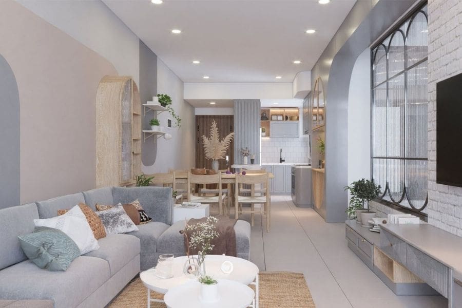 Phong cách tối giản tập trung vào việc sử dụng ít đồ nội thất và chi tiết trang trí, nhằm tạo ra không gian thông thoáng. Thiết kế này thường sử dụng màu sắc trung tính và sáng, giúp làm nổi bật các món đồ chính. Không gian được tận dụng tốt các món đồ đa năng, tạo sự gọn gàng và dễ dàng trong việc bảo trì. Phong cách này phù hợp cho những ai yêu thích sự đơn giản và hiện đại.