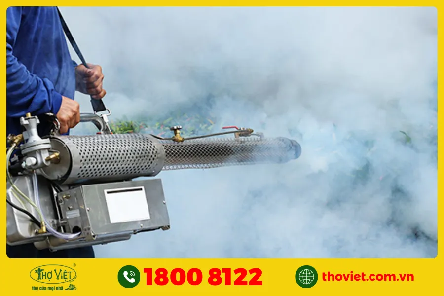 Thợ Việt sử dụng các thiết bị phun hiện đại như máy phun ULV, máy phun sương, máy phun áp lực cùng thuốc diệt côn trùng đạt chuẩn Bộ Y tế. Trước khi thực hiện, nhân viên sẽ trang bị đồ bảo hộ, khẩu trang và kiểm tra an toàn kỹ thuật đầy đủ.