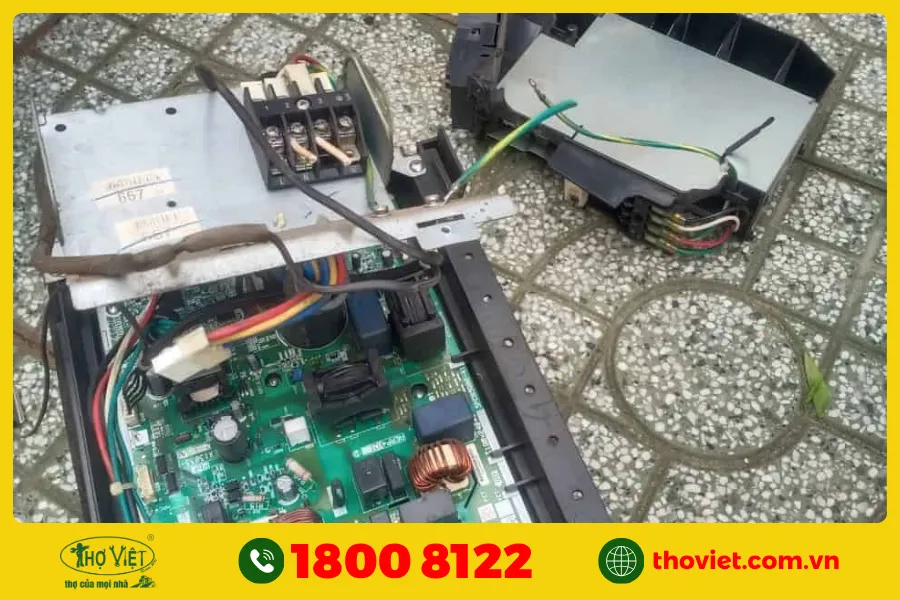 Bo điều khiển dàn nóng xử lý toàn bộ tín hiệu cảm biến và truyền về dàn lạnh. Khi IC, tụ nguồn hoặc mạch giao tiếp hư, máy sẽ báo lỗi E5. Dấu hiệu thường là quạt dàn nóng không quay hoặc máy nén không khởi động.