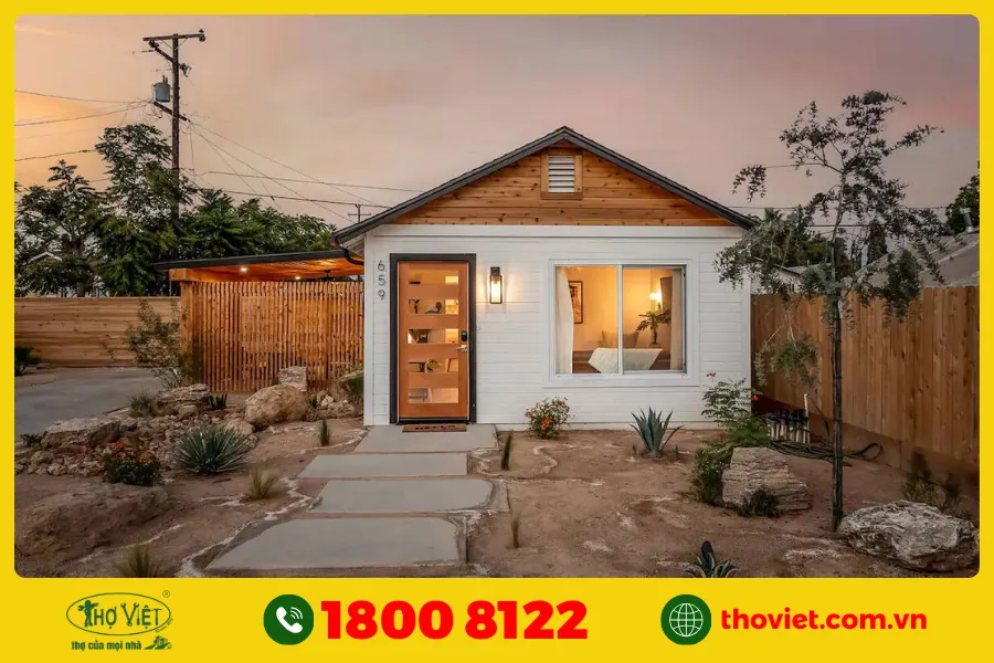 Container cũ 20 feet (khoảng 15m²) có giá 15 – 20 triệu, phần còn lại dùng để cải tạo và hoàn thiện nội thất. Cắt cửa sổ, lắp cửa ra vào, làm cách nhiệt bằng tấm xốp PE hoặc tôn cách nhiệt. Sơn bên ngoài chống gỉ, bên trong có thể ốp gỗ công nghiệp hoặc tấm nhựa PVC. Giải pháp này phù hợp cho đất tạm hoặc khu vực nông thôn, có thể mở rộng sau này bằng cách ghép thêm container.