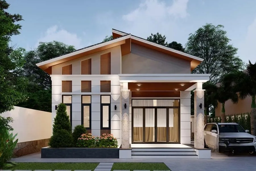 Mẫu nhà ống 1 tầng 5×20 mái Thái mang lại vẻ đẹp truyền thống nhưng vẫn rất thanh thoát và duyên dáng. Điểm nổi bật của mái Thái là khả năng chống nóng, thoát nước mưa nhanh chóng và tạo điểm nhấn về mặt thẩm mỹ.