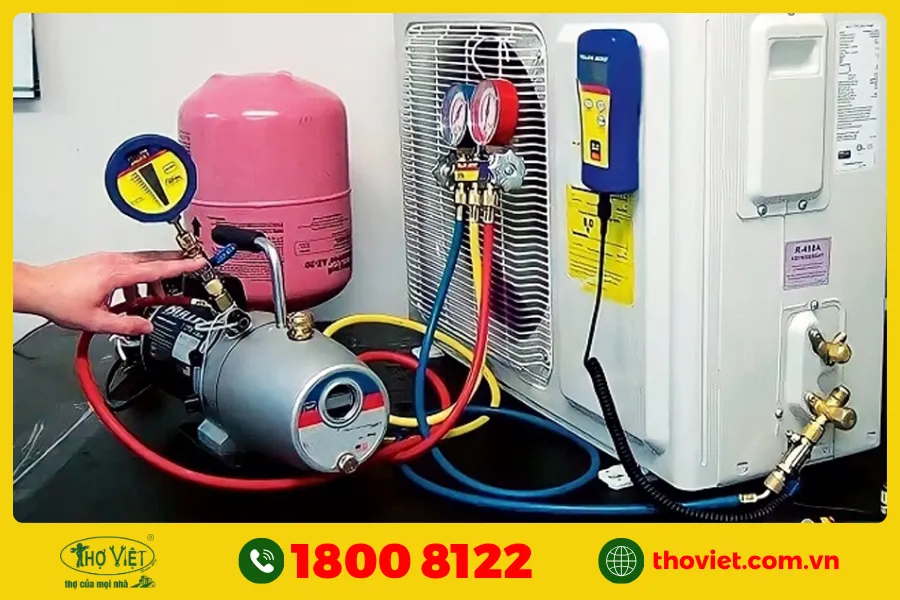 • Bước 4: Hút chân không hệ thống và nạp gas mới.