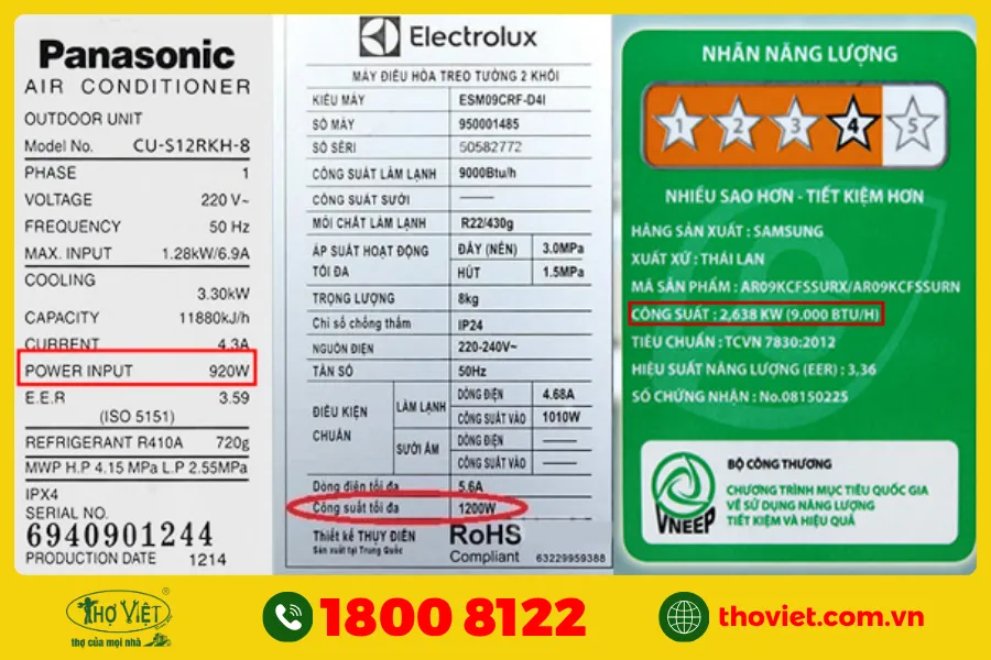 Mỗi chiếc điều hòa đều có hai thông số: công suất làm lạnh (BTU) và công suất tiêu thụ điện (W). Ví dụ, điều hòa 1HP (9.000 BTU) thường tiêu thụ khoảng 700 – 900W, nhưng khi khởi động có thể tăng lên 1.800 – 2.200W. Các dòng inverter sẽ tiết kiệm điện hơn và giảm tải khởi động đáng kể so với điều hòa thường.