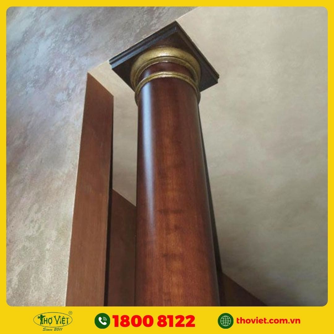 • Tính thẩm mỹ cao: Sơn giả gỗ giúp cột tròn trở nên mềm mại và tự nhiên, giống như gỗ thật, giúp không gian trở nên sang trọng và ấm cúng hơn. Màu sắc và vân gỗ có thể được điều chỉnh theo yêu cầu của khách hàng để phù hợp với tổng thể thiết kế của ngôi nhà.