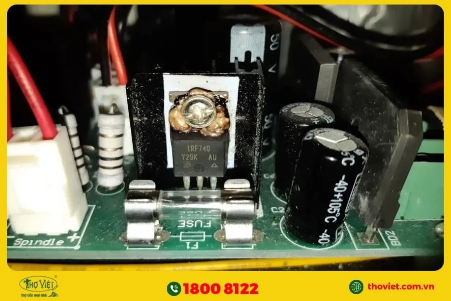 MOSFET là linh kiện chịu áp lực lớn nhất trong nguồn xung, chuyên đảm nhiệm vai trò đóng ngắt điện với tần số cao liên tục trong suốt quá trình hoạt động. Khi MOSFET bị đánh thủng, nguồn xung mất hoàn toàn khả năng chuyển đổi điện áp, thiết bị không thể khởi động hoặc gây chập cháy nghiêm trọng. Nguyên nhân thường gặp là điện áp đầu vào tăng đột biến, quá tải kéo dài hoặc hệ thống tản nhiệt hoạt động kém hiệu quả.