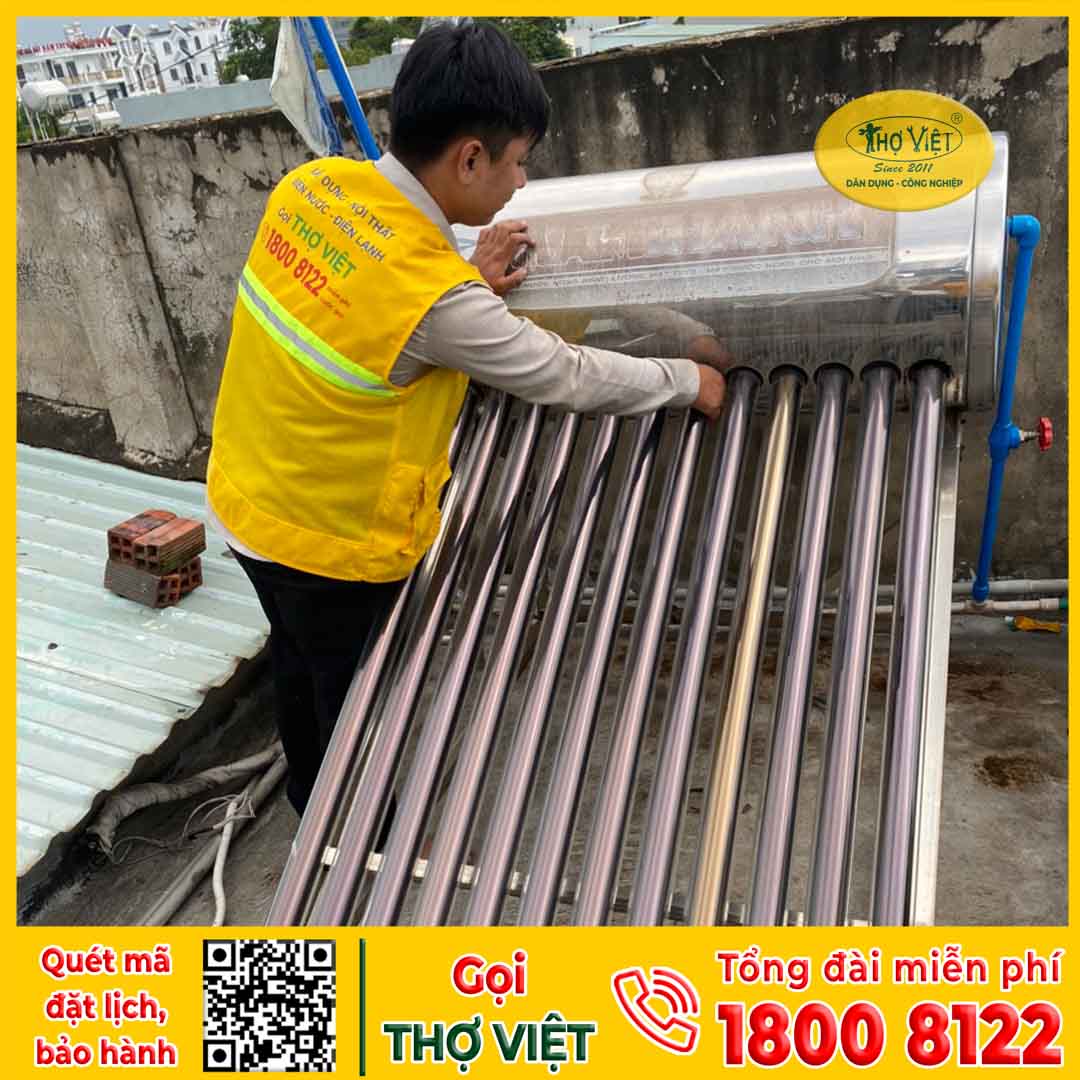 Thợ Việt vệ sinh máy nước nóng năng lượng mặt trời tại khu vực TPHCM