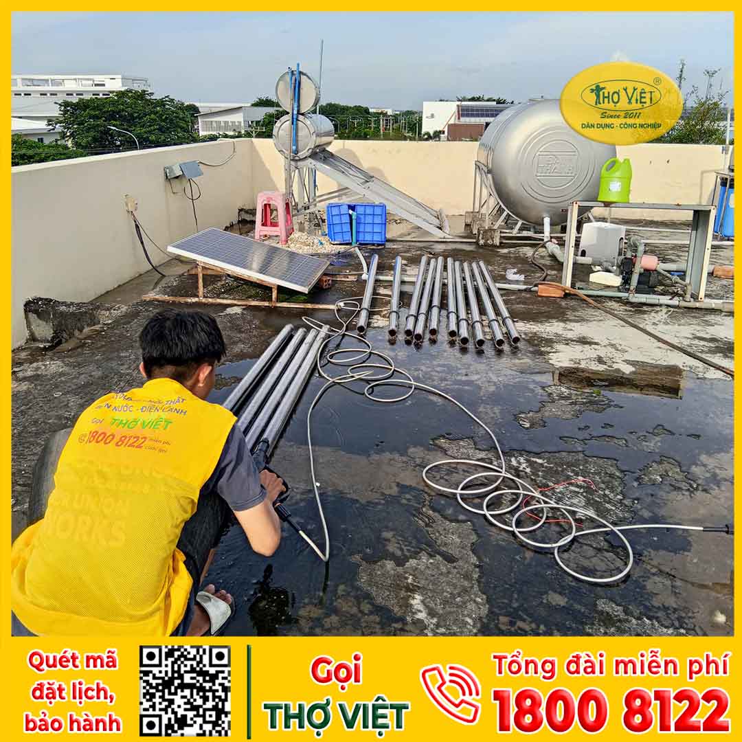 Thợ Việt vệ sinh máy nước nóng năng lượng mặt trời tại khu vực TPHCM