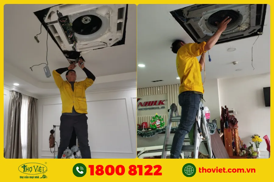 Khi khách hàng liên hệ qua hotline 1800 8122 hoặc website, đội ngũ tư vấn của Thợ Việt sẽ tiếp nhận thông tin, xác định loại máy, số lượng và vị trí lắp đặt. Sau đó, nhân viên sắp xếp kỹ thuật viên đến tận nơi theo khung giờ mà khách hàng mong muốn.
